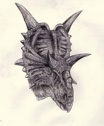 Rekonstrukcja przyżyciowa Xenoceratops foremostensis. Autor: Jakub Kowalski | |